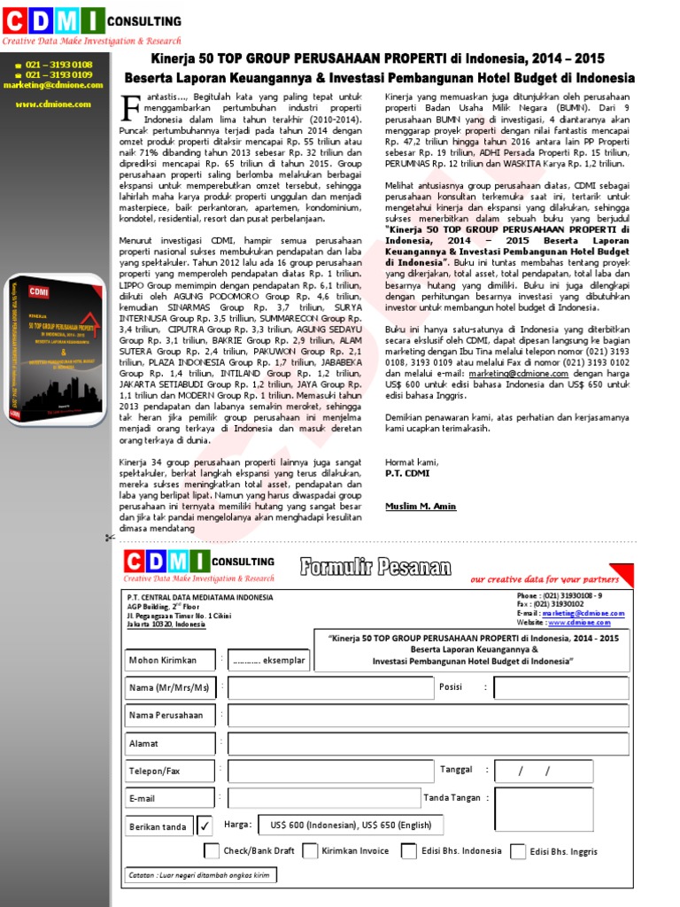 Kinerja 50 TOP GROUP PERUSAHAAN PROPERTI di Indonesia
