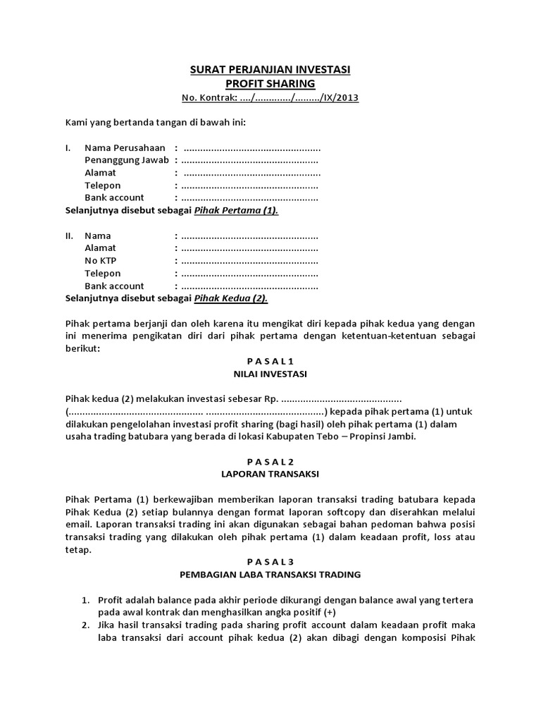 Contoh Surat Perjanjian Investasi Forex « What you should