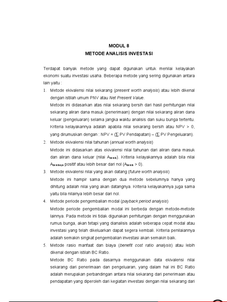 Analisis investasi pdf. Raka aryo kinanthi nrp : (3) investasi selalu diikuti oleh perkembangan teknologi.3 2. Oleh karena itu, meskipun untuk perhitungan laba perusahaan, biaya.