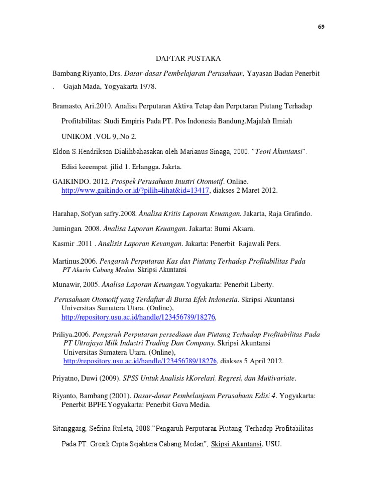 Pengaruh perputaran aktiva, piutang dan hutang terhadap profitabilitas pt. Reyni agustin /212016176/2020/pengaruh profitabilitas, struktur aktiva, dan non debt tax shield terhadap struktur modal pada perusahaan sektor manufaktur yang terdaftar di bursa efek indonesia (bei) penelitian ini bertujuan untuk mengetahui pengaruh profitabilitas, struktur aktiva, Pengaruh financial leverage, investasi, likuiditas, dan profitabilitas terhadap kebijakan dividen (studi pada perusahaan manufaktur yang terdaftar di bei) oleh: