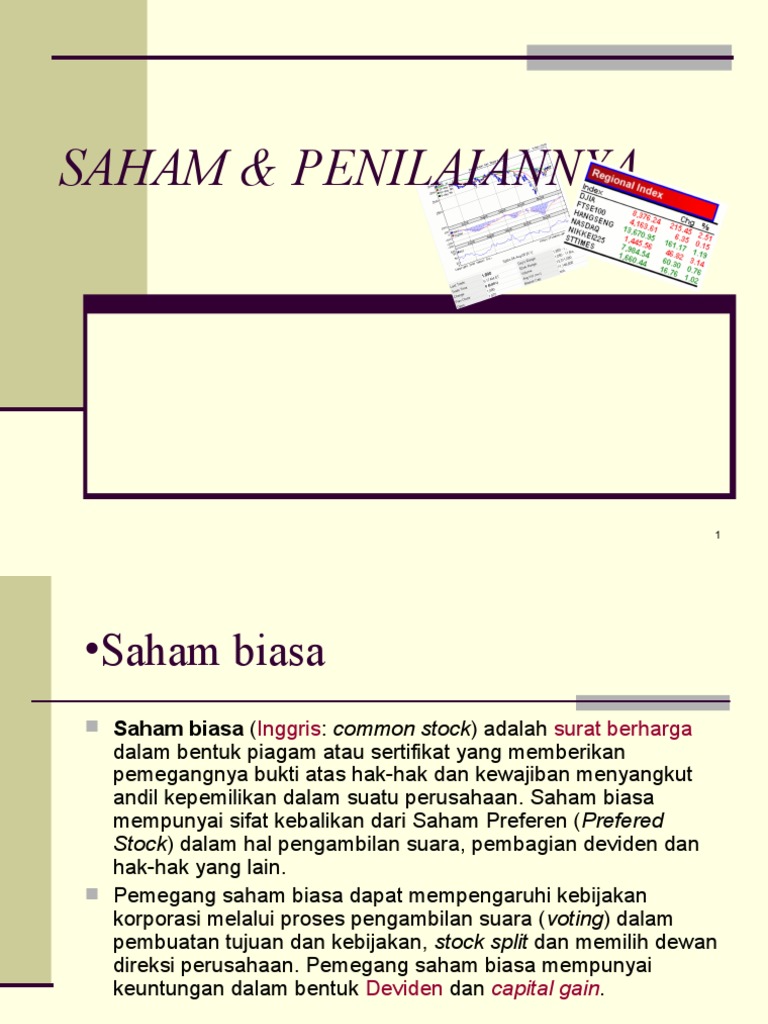 Melakukan hal yang sederhana dengan hasil yang maksimal. Saham biasa ( common stock ) saham biasa ini merupakan jenis efek yang paling sering digunakan oleh emiten ( perusahaan publik ) dan yang paling populer di pasar modal. Sebagai contoh adalah pengeluaran biaya promosi produk untuk jangka panjang, biaya penelitian dan pengembangan, dan biaya program pelatihan dan pendidikan karyawan.