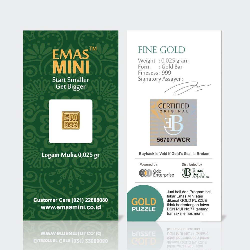 Emas mini itu murni 24 k dgn kadar 99.231 sesuai yg diterbitkan sucofindo, lagipula odc ngajak masyarakat jualan emas antam, perhiasan emas dan berlian, emas mini hanya sarana memiliki emas antam cicil kecil2 lalu tukar jadi emas antam, buat masyarakat yg mau menjadi pengusaha emas bisa kerjasama dgn odc, krn odc menyediakan emas antam dan perhiasan emas, berlian Jadi misalnya anda memiliki emas 100 gram, maka untuk meningkatkan nilai emas, kita sebaiknya menggadaikannya. Banyak sekali investasi bodong berkedok investasi emas.